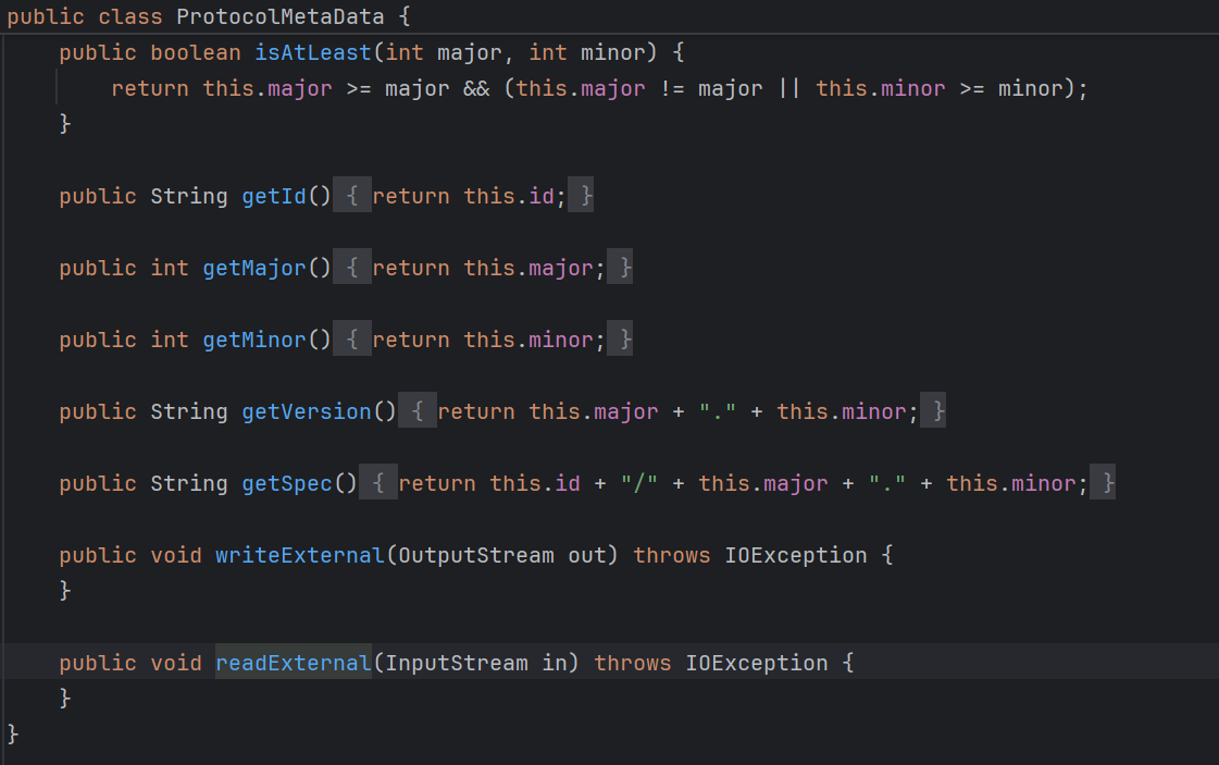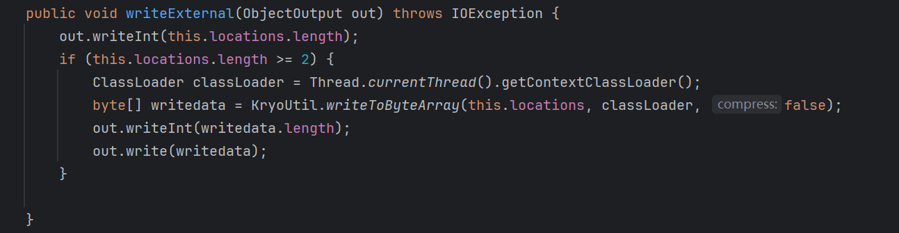 其中 readExternal、writeExternal 为自定义实现的反序列化方法和序列化方法,用于业务需求的灵活序列化传输,存在一个入口点: