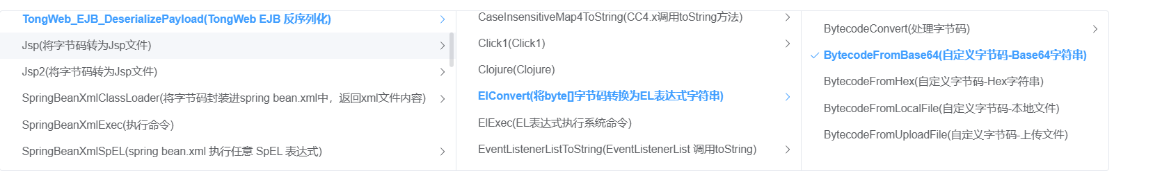 参考 javachains 中的代码即可,不同点是 Xbean 依赖经过 TongWeb 二次开发,需要更换部分包名,其他基本一致。