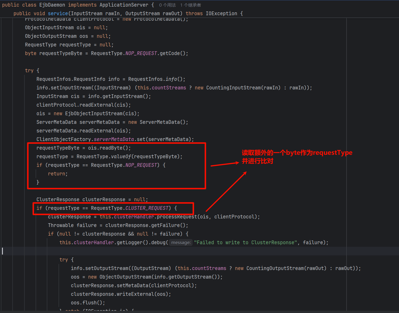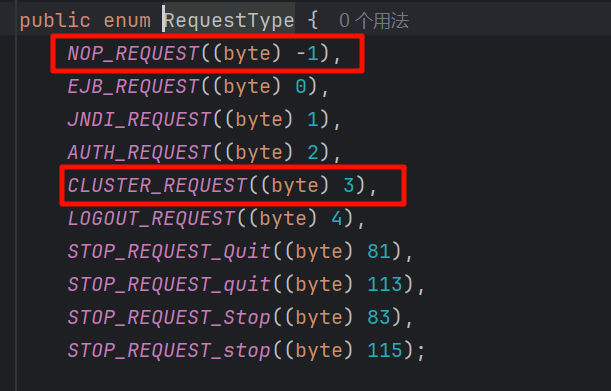 接着往下看,又读取了一个字节作为 requestType,根据上图的枚举值,其值必须为 0 (byte):