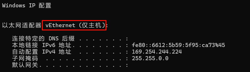 提取到适配器名称:vEthernet (仅主机)