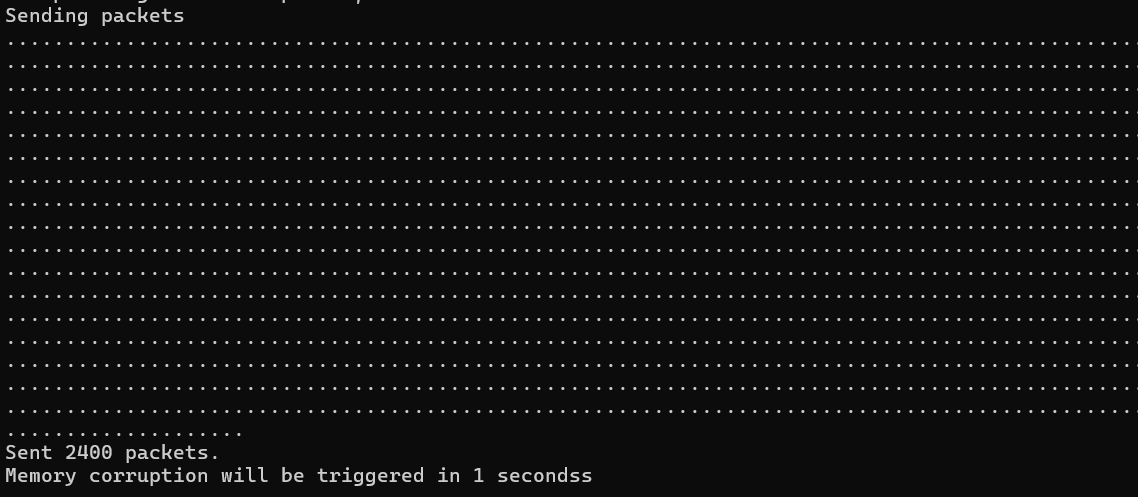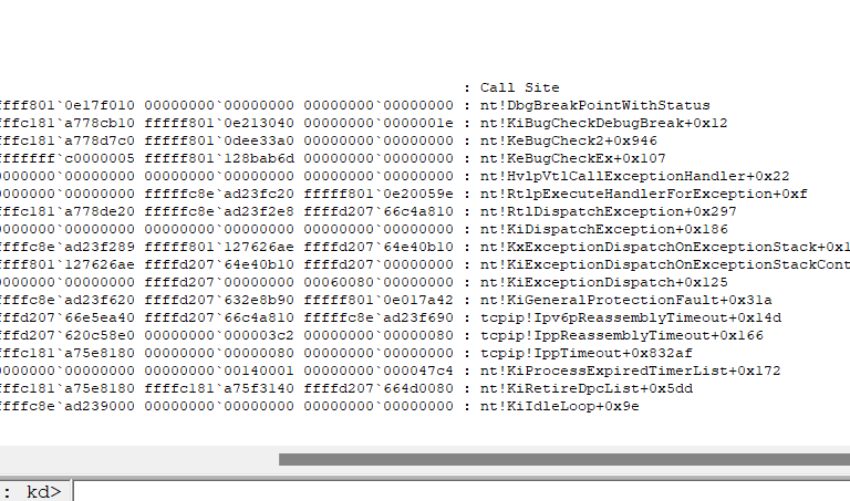 尝试多次,依旧失败,目标靶机并未蓝屏,根据POC描述,可能是数据包未合并,目标靶机适配器可能不支持,之后尝试内核调试。