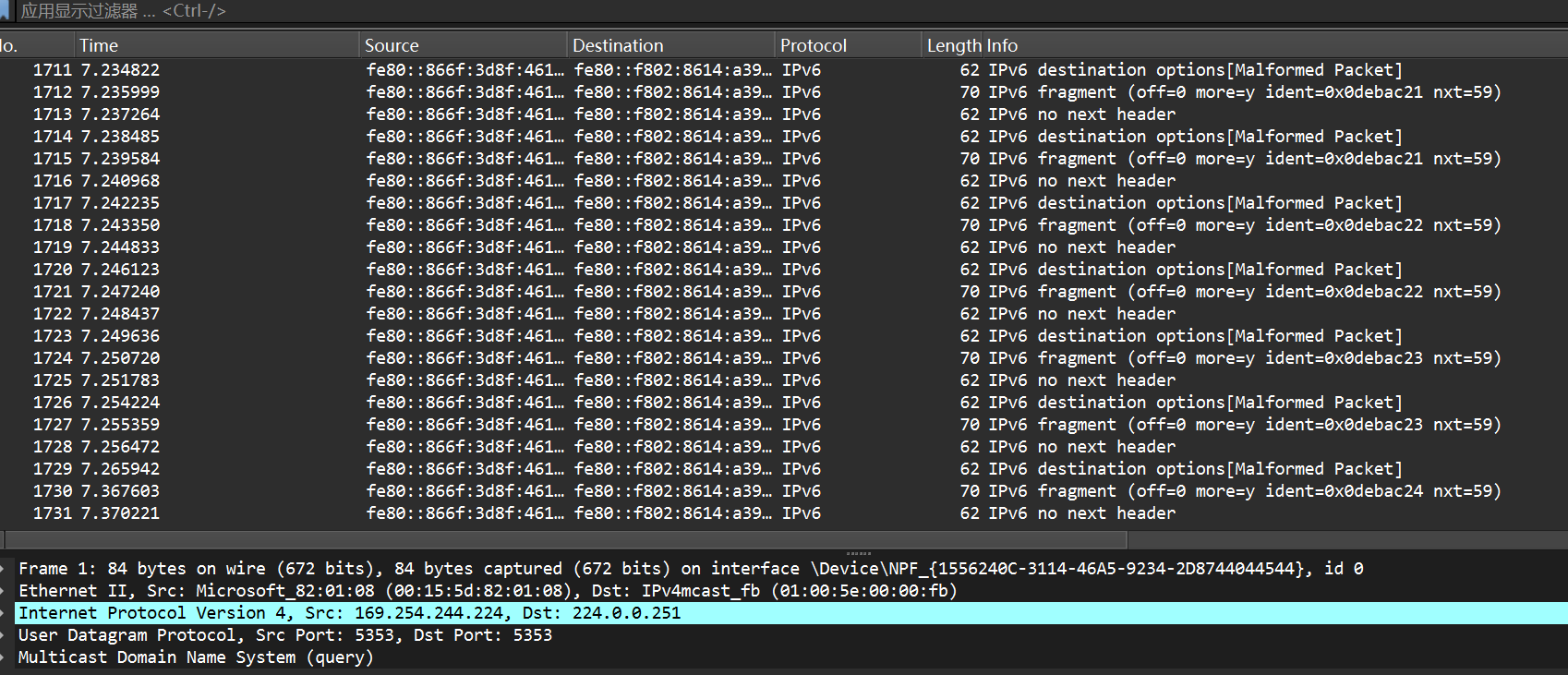 wireshark抓取 IPv6 数据包: