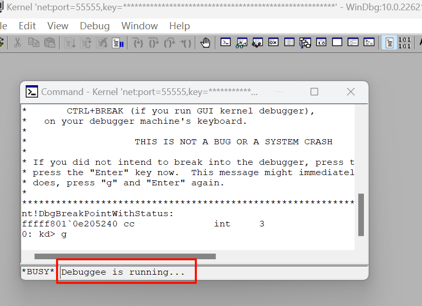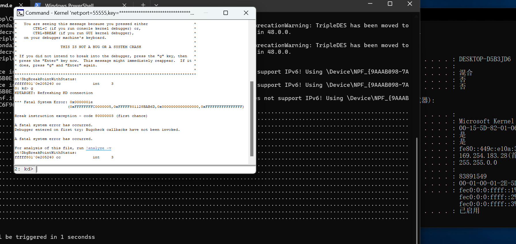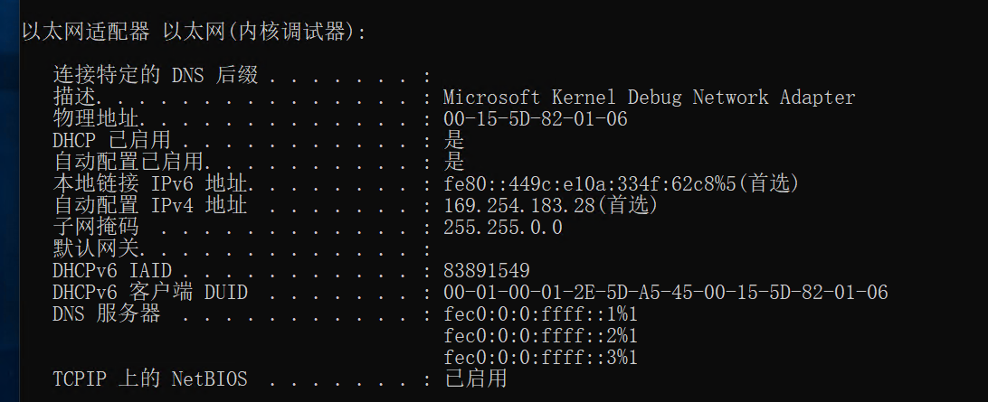 此时适配器已变成 Microsoft Kernel Debug Network Adapter,也就是在内核模式下适配器变了。