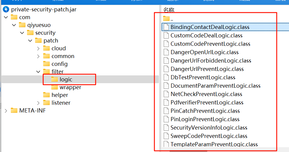 将生成的内存马 class 文件放入 private-security-patch.jar 中的 com.qiyuesuo.security.patch.filter.logic 下: